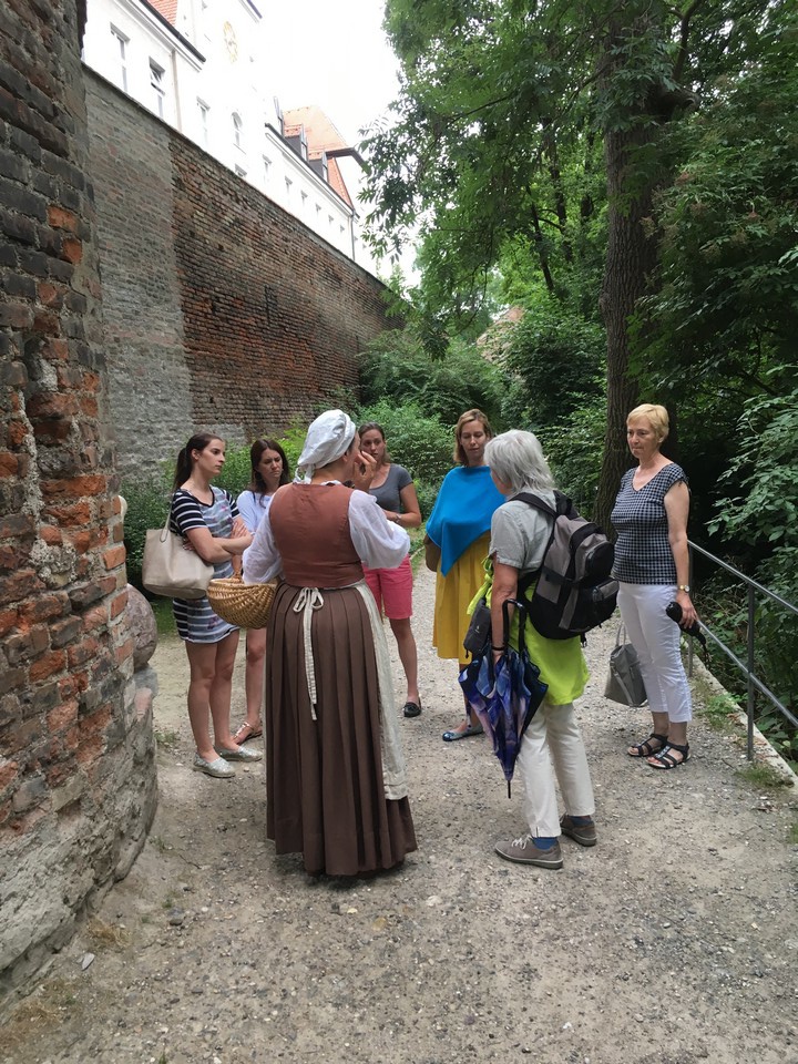 Nach einem Mittagessen im Pastissima ging es auf eine Stadtführung der etwas anderen Art: Als Detektive machten wir uns entlang der alten Wallanlagen vom Lueginsland bis zum Perlachturm auf die Suche nach dem Mörder vom Perlachturm …